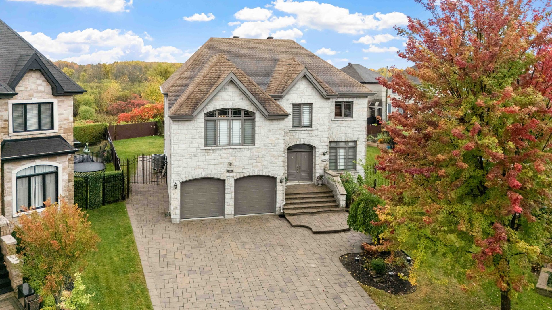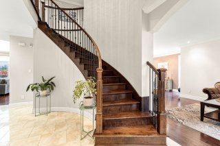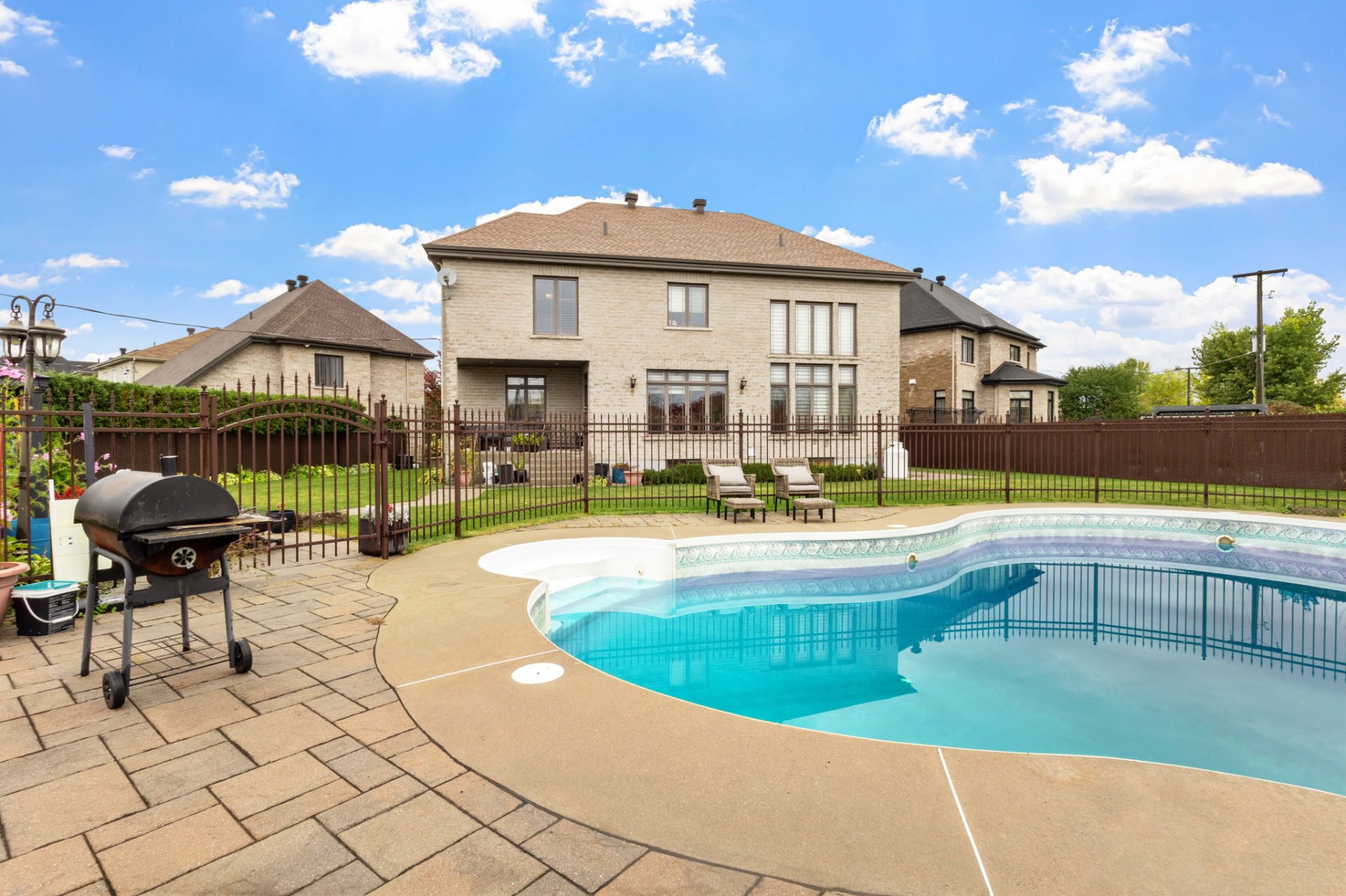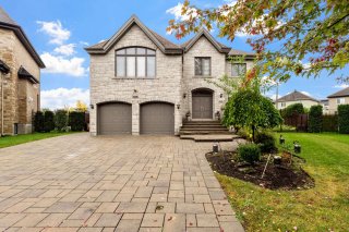 Welcome to this custom-built luxury home offering over 4,400 sq. ft. of living space on a landscaped corner lot of 11,000+ sq. ft. Featuring a stone façade, brick on all sides, paving-stone driveway, and elegant curb appeal. Inside, a grand entrance with ceramic floors and a circular staircase opens to an airy main floor with an open-concept kitchen, dining, and family room with cathedral ceilings and large windows. Includes 5 bedrooms, 4 full baths, 1 powder room, high-end finishes, finished basement, fenced yard with no rear neighbours, and a heated inground pool. Near parks, schools, and amenities.