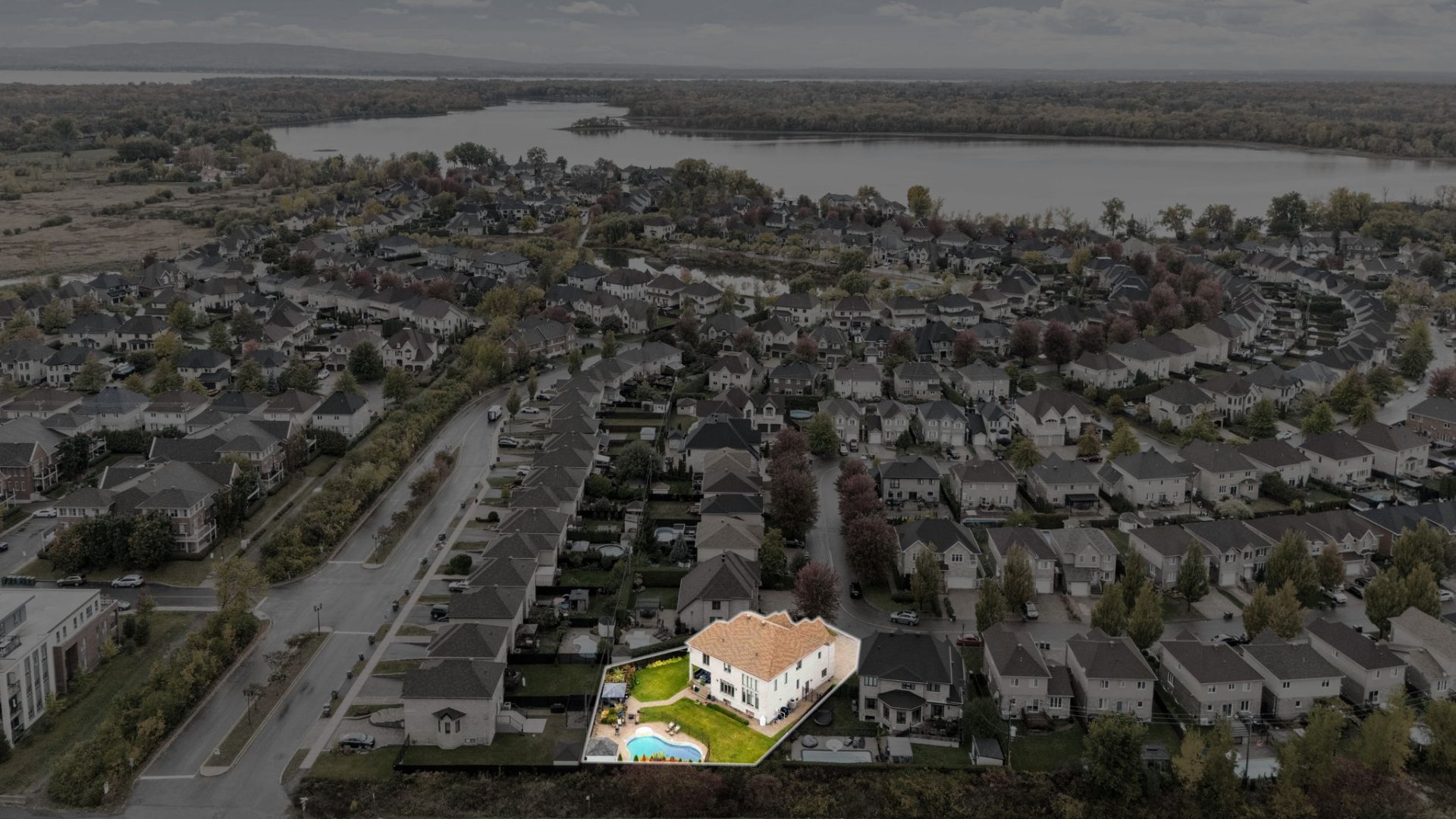 landscaped, and featuring a heated inground pool