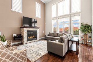 - Open-concept main floor featuring a kitchen, dining room,