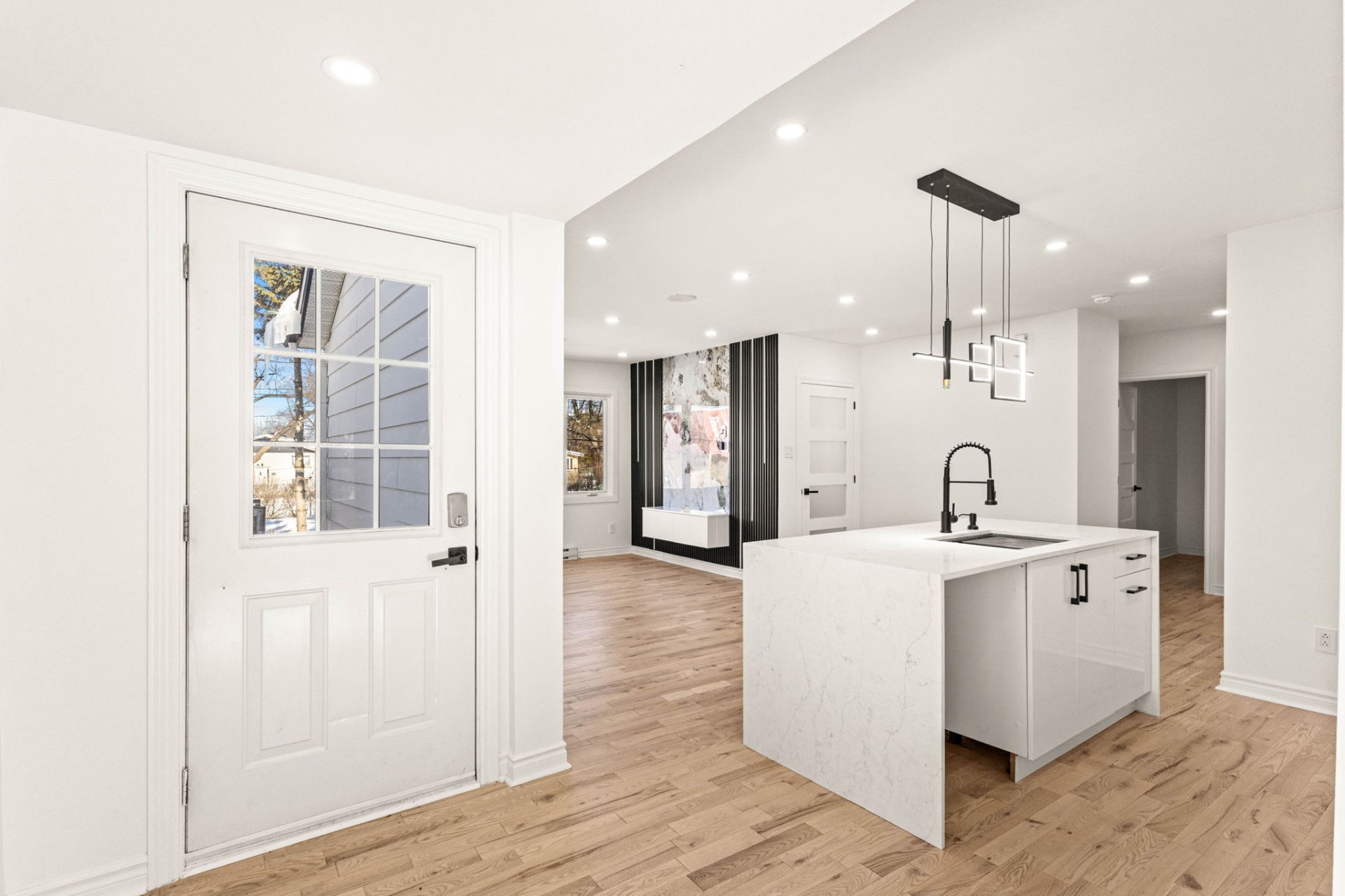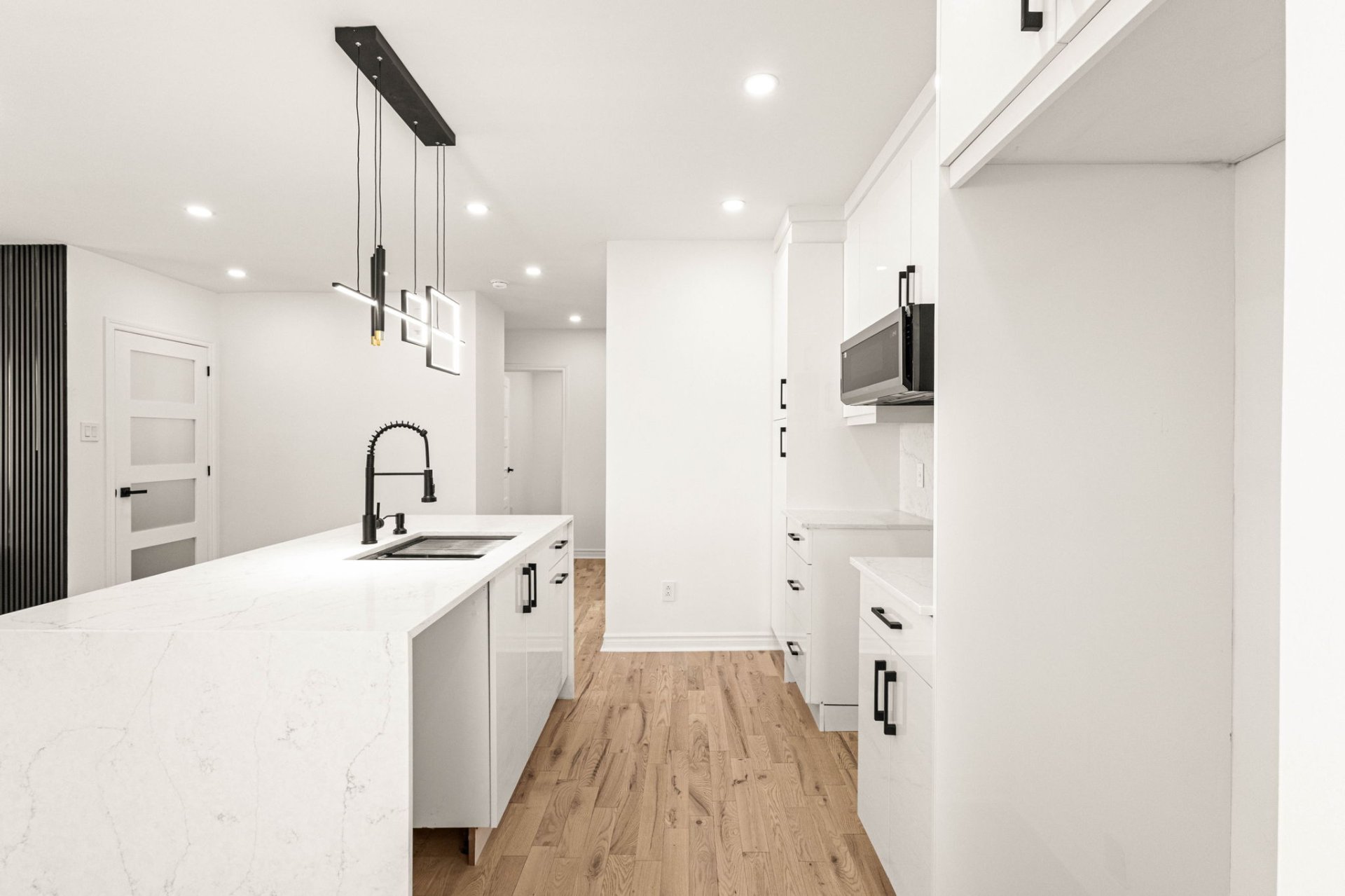 - New kitchen island with quartz countertops throughout